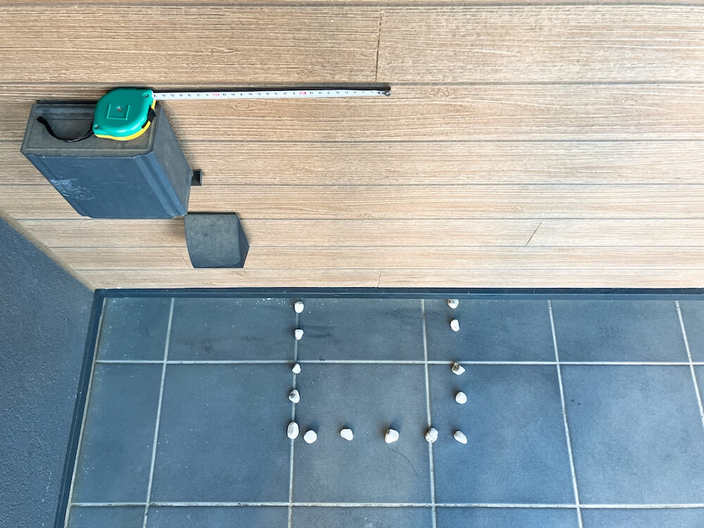 で、これをイメージしながら、すぐ側にあった石でサイズを作ってみると、こんな感じ。