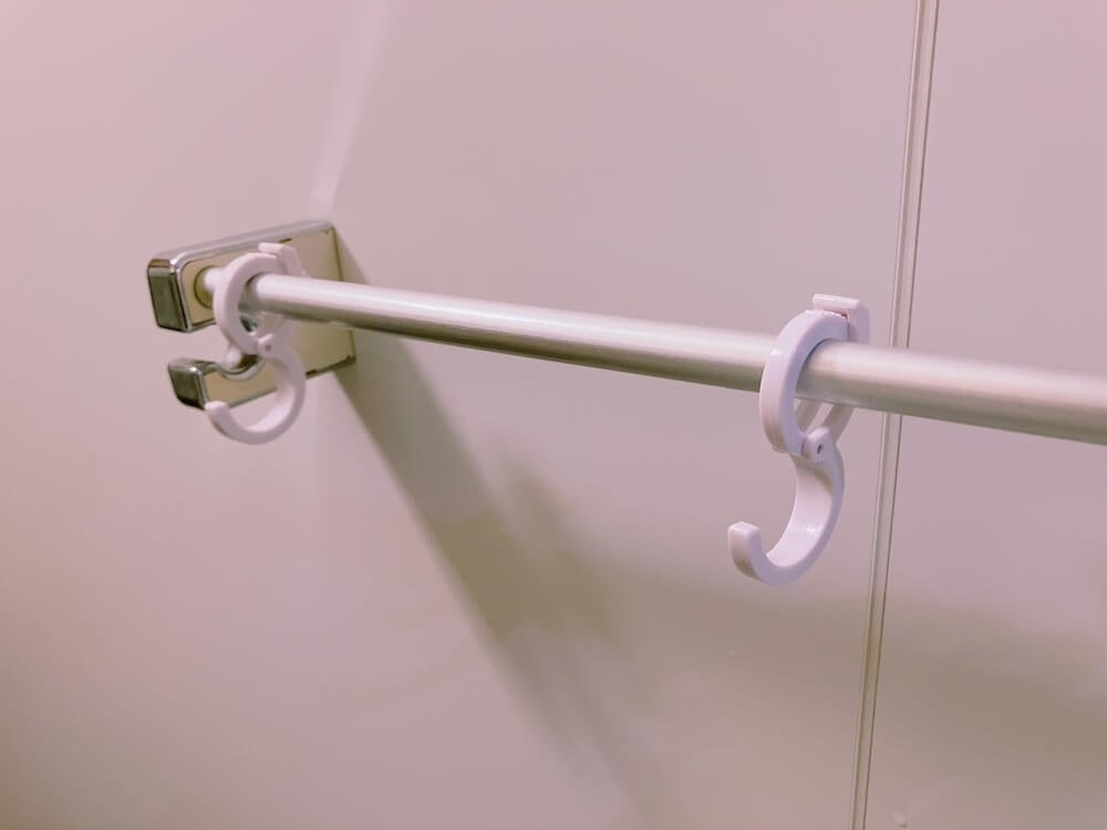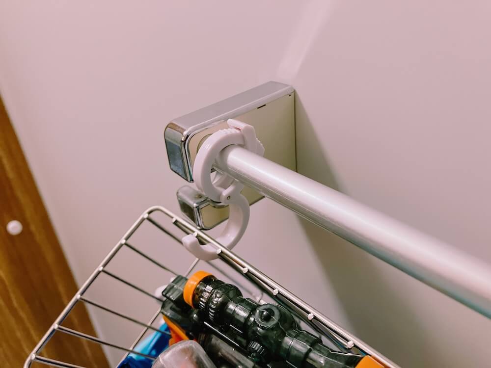 じゃあ、邪魔だから、頭上にある突っ張り棒に吊す収納にするっ!